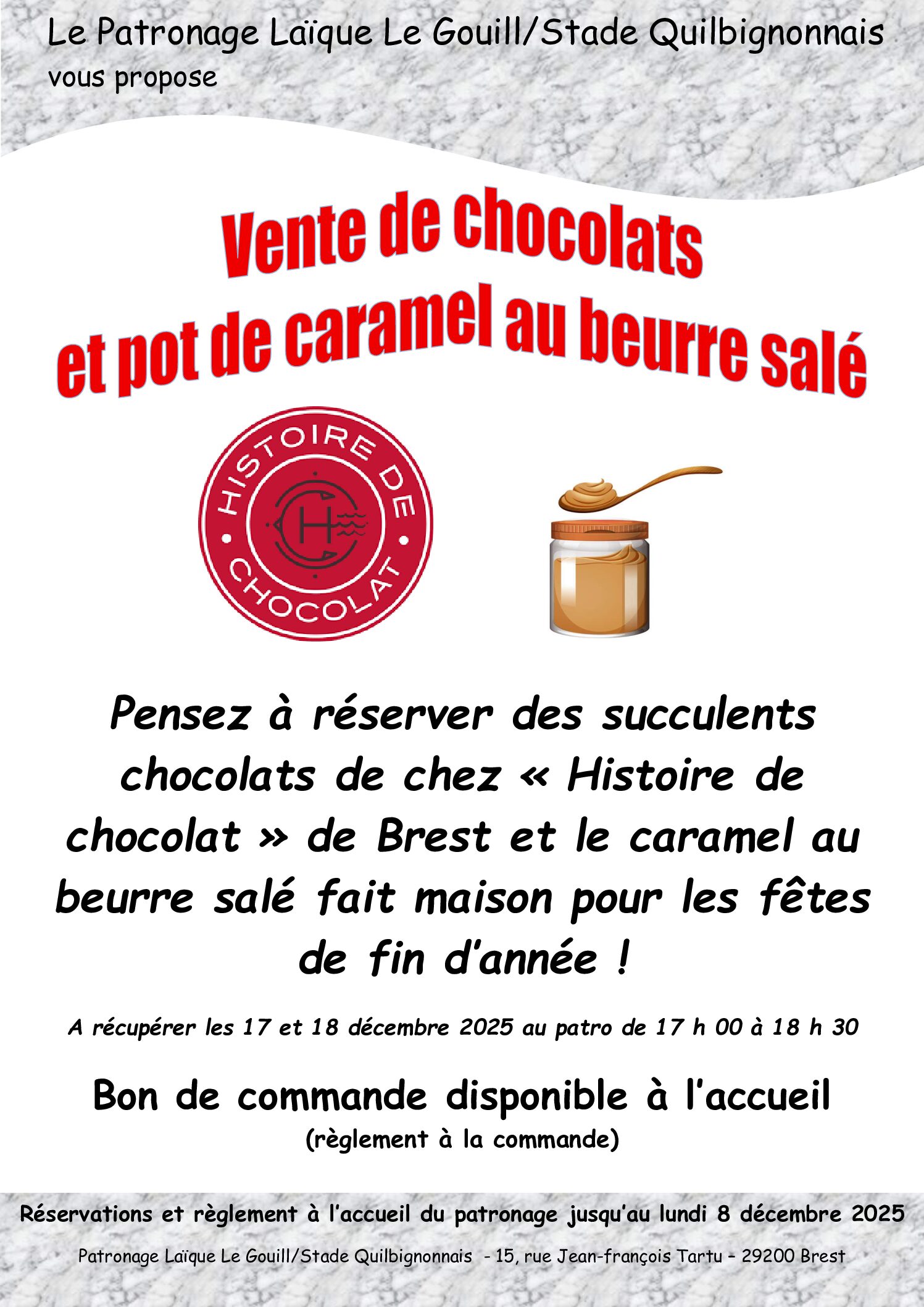 Pensez à réserver des succulents chocolats de chez « Histoire de chocolat » de Brest et le caramel au... Lire plus → Vente de chocolats “Histoire de chocolat” et pot de caramel au beurre salé